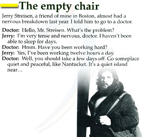 Doctor: Well, you should take a few days off. Go someplace quiet and peaceful, like Nantucket. It’s a quiet island near…
