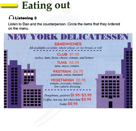 Listen to Dan and the counterperson. Circle the items that they ordered on the menu.