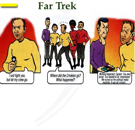Nothing happened, Captain. You were bored. You needed to be “entertained”. We turned on the artificial reality machine. It was all a dream…