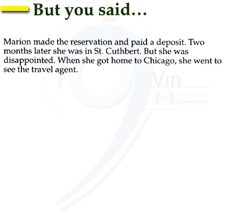 Marion made the reservation and paid a deposit. Two months later she was in St. Cuthbert. But she was disappointed. When she got home to Chicago, she went to see the travel agent.